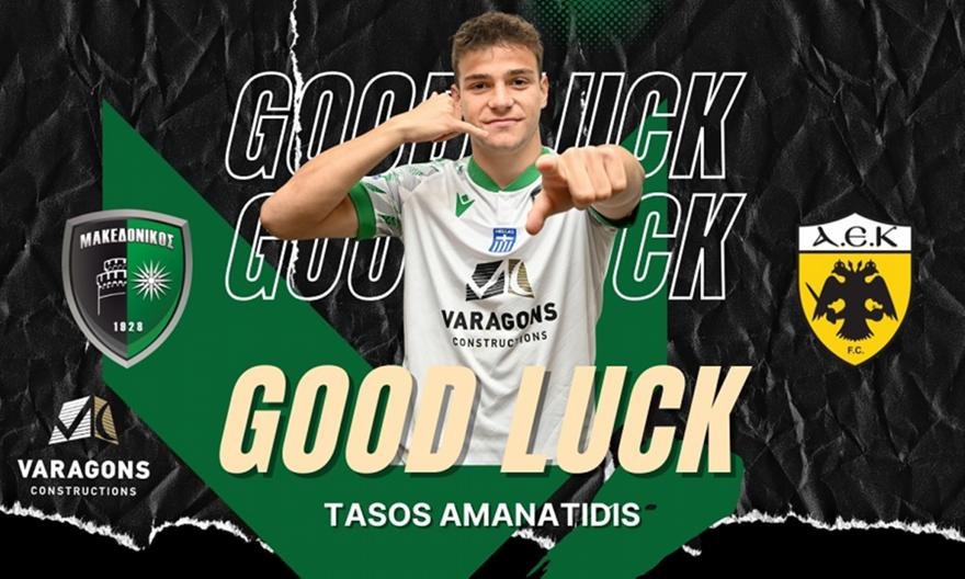 «Η διοίκηση της ΠΑΕ Μακεδονικός βρίσκεται στην ευχάριστη θέση να ανακοινώσει την μεταγραφή του 17χρονου ποδοσφαιριστή του συλλόγου, Αναστάσιου (Τάσου) Αμανατίδη στην ΠΑΕ ΑΕΚ!